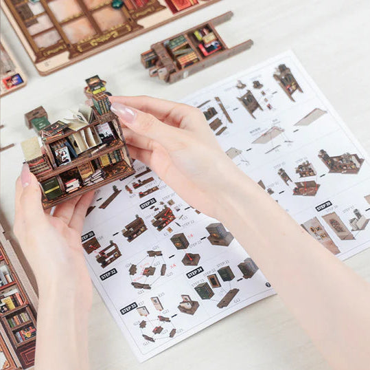 The Drama Bookstore Miniature Kit is packed with tiny details that bring this miniature world to life.