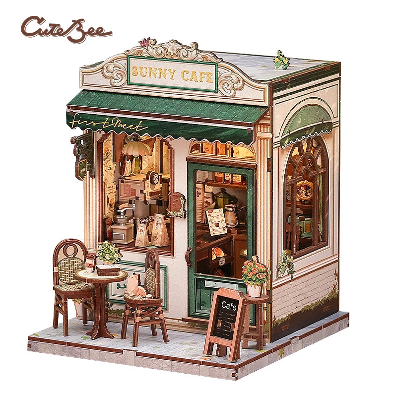 Can you smell the scent of fresh coffee and pastries? Build this charming miniature coffee shop with the Sunny Cafe Miniature Kit.