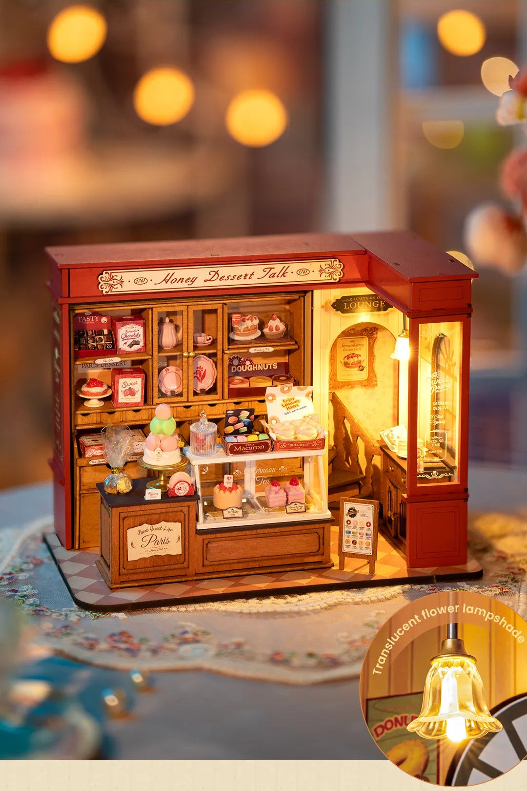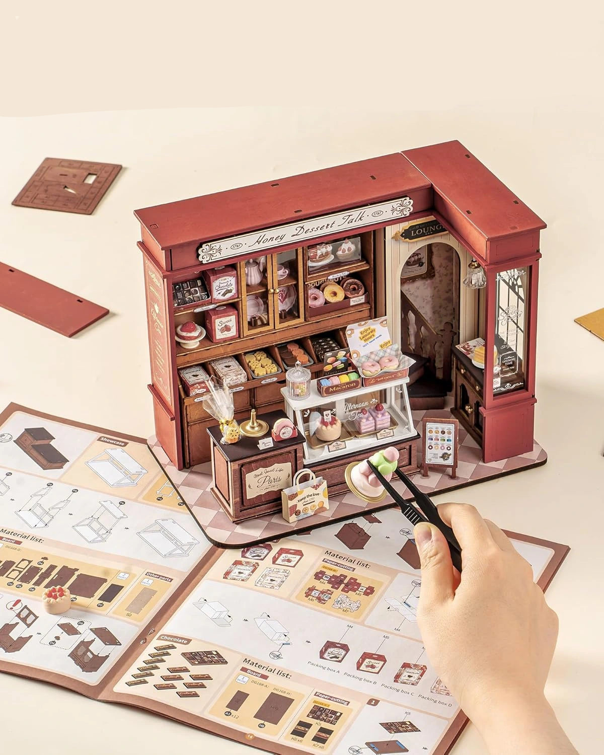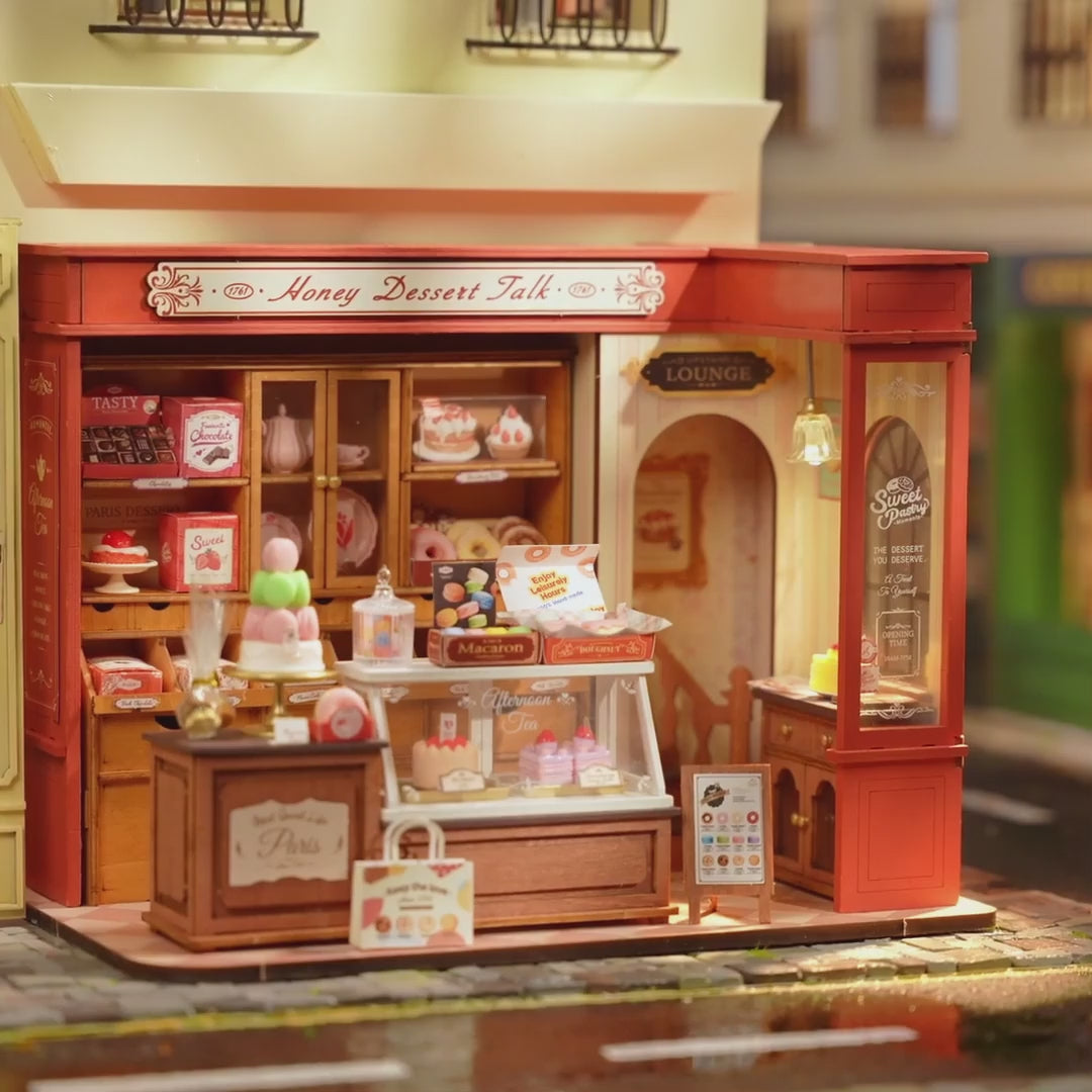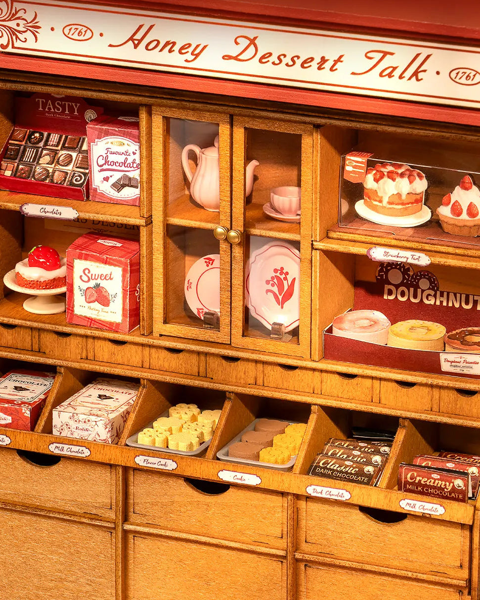 The Honey Dessert Talk DIY Miniature Kit comes with easy to assemble pre-cut pieces to build your model - no glue required!