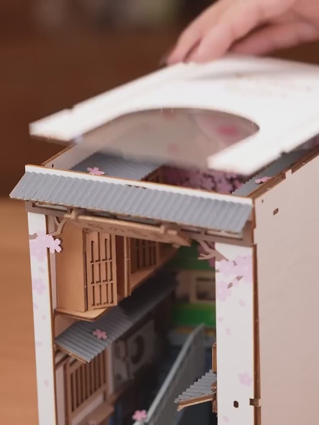 The serene beauty of cherry blossom season awaits you with the Sakura Densya Book Nook Kit. Transport yourself to springtime Japan with blossoming cherry trees and soft LED lighting.